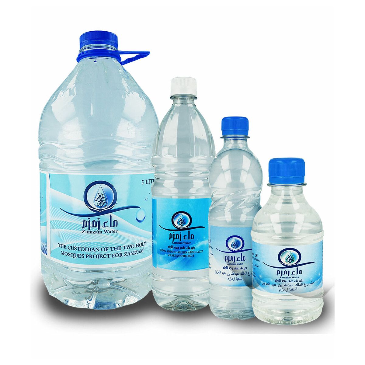 Authentic Zamzam Water from Makkah — 100% pure and naturally blessed. Packaged by the National Water Company, Saudi Arabia. Available in 100ml, 200ml, 500ml, 1L & 5L sealed bottles.